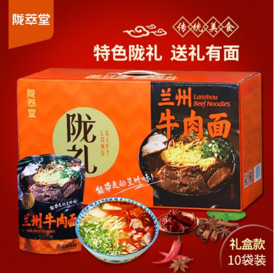 • 商品名称:兰州牛肉面礼盒装286g*10袋送礼甘肃特产牛肉拉面熟面速食汤面 礼盒装牛肉面2.86kg