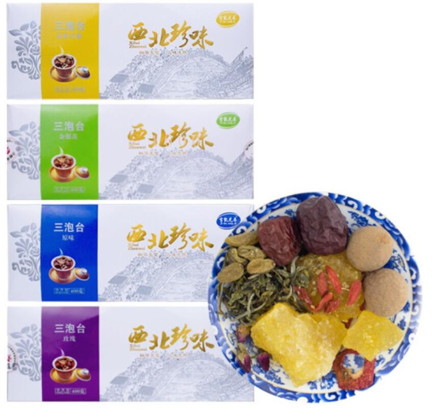 • 商品名称:甘肃兰州特产 老兰州三泡台 八宝茶 盖碗茶三炮台茶叶 4盒4种口味共1600g养生花草茶叶