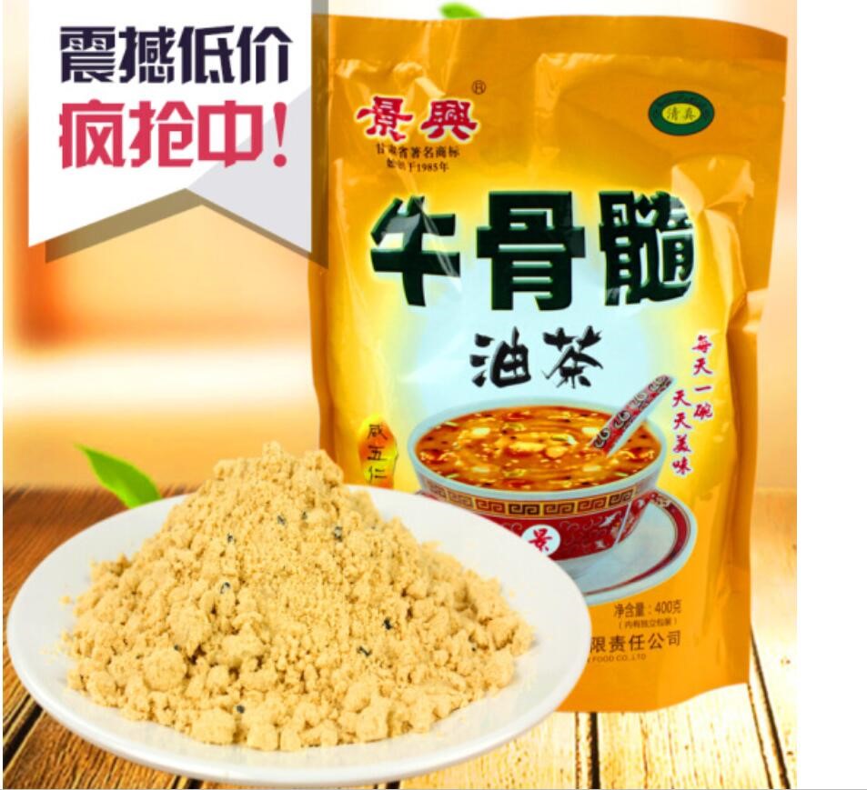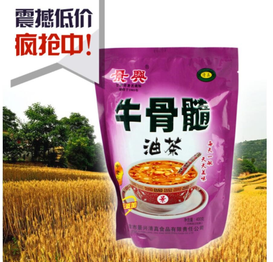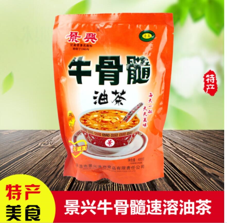 • 商品名称:西北特产甘肃平凉景兴牛骨髓速溶油茶方便速食早餐夜宵八宝粥咸芝麻糊1袋包邮