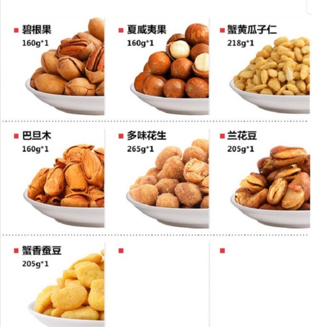 • 商品名称:三只松鼠 坚果礼盒 休闲零食干果大礼包红黄款 每日坚果混合组合 春节年货礼盒 坚果礼1373g(7袋)