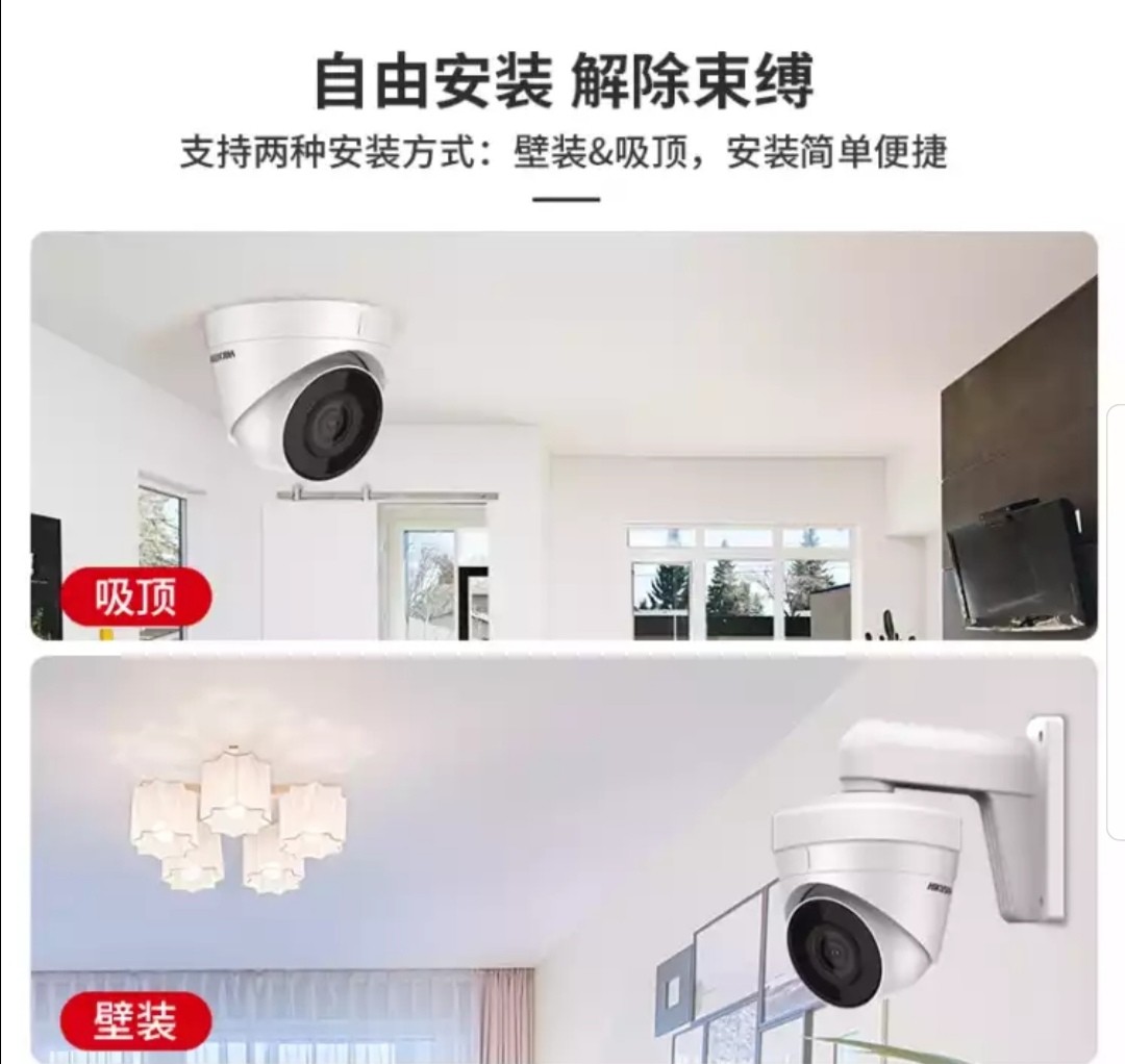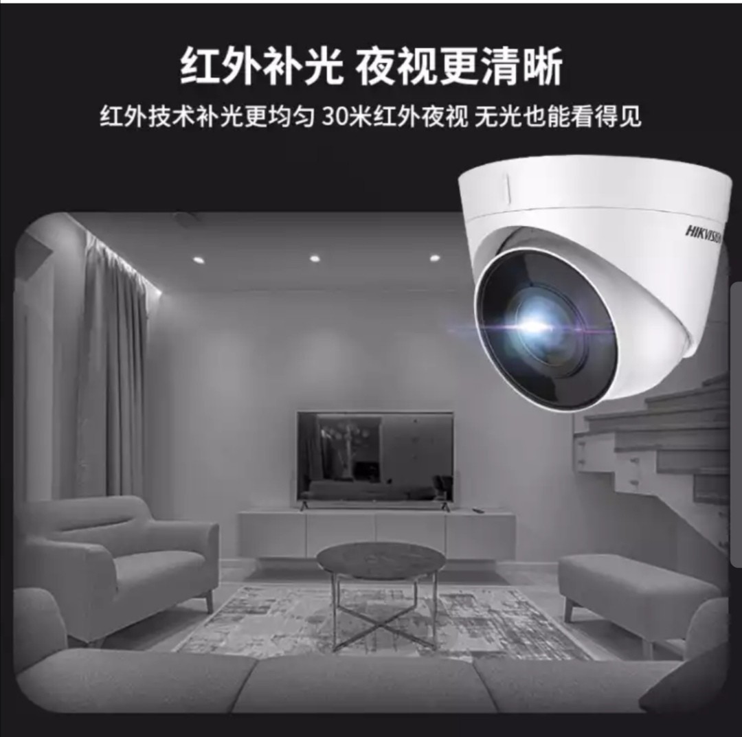 • 商品名称:海康威视监控摄像头 200万 网络高清 室内室外半球 POE 带音频红外夜视监控器 H265存储减半 T12H2-I 4mm