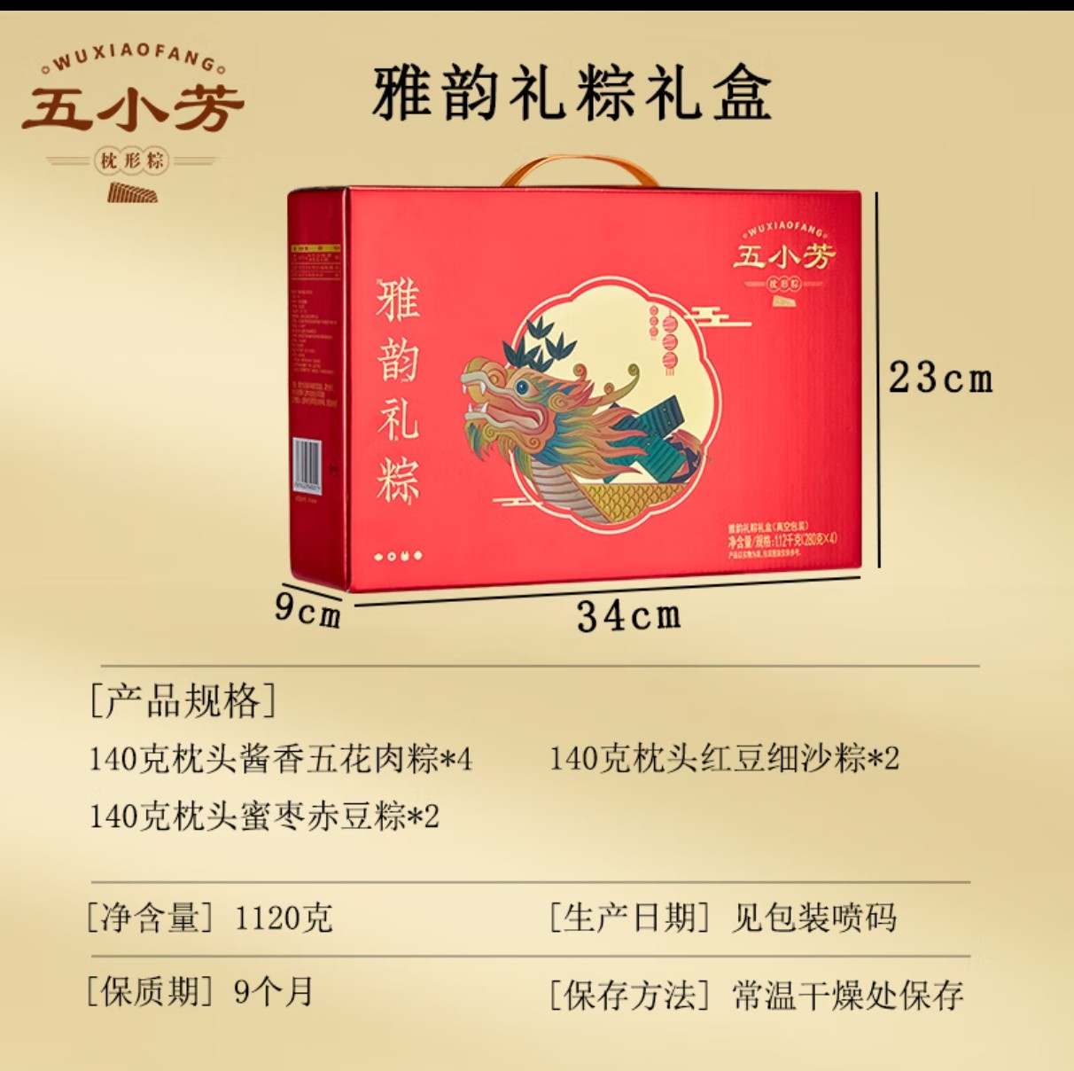 140克×2酱香猪五花肉粽 140克×2红豆细沙粽 140克×2蜜枣赤豆粽共8枚1120g