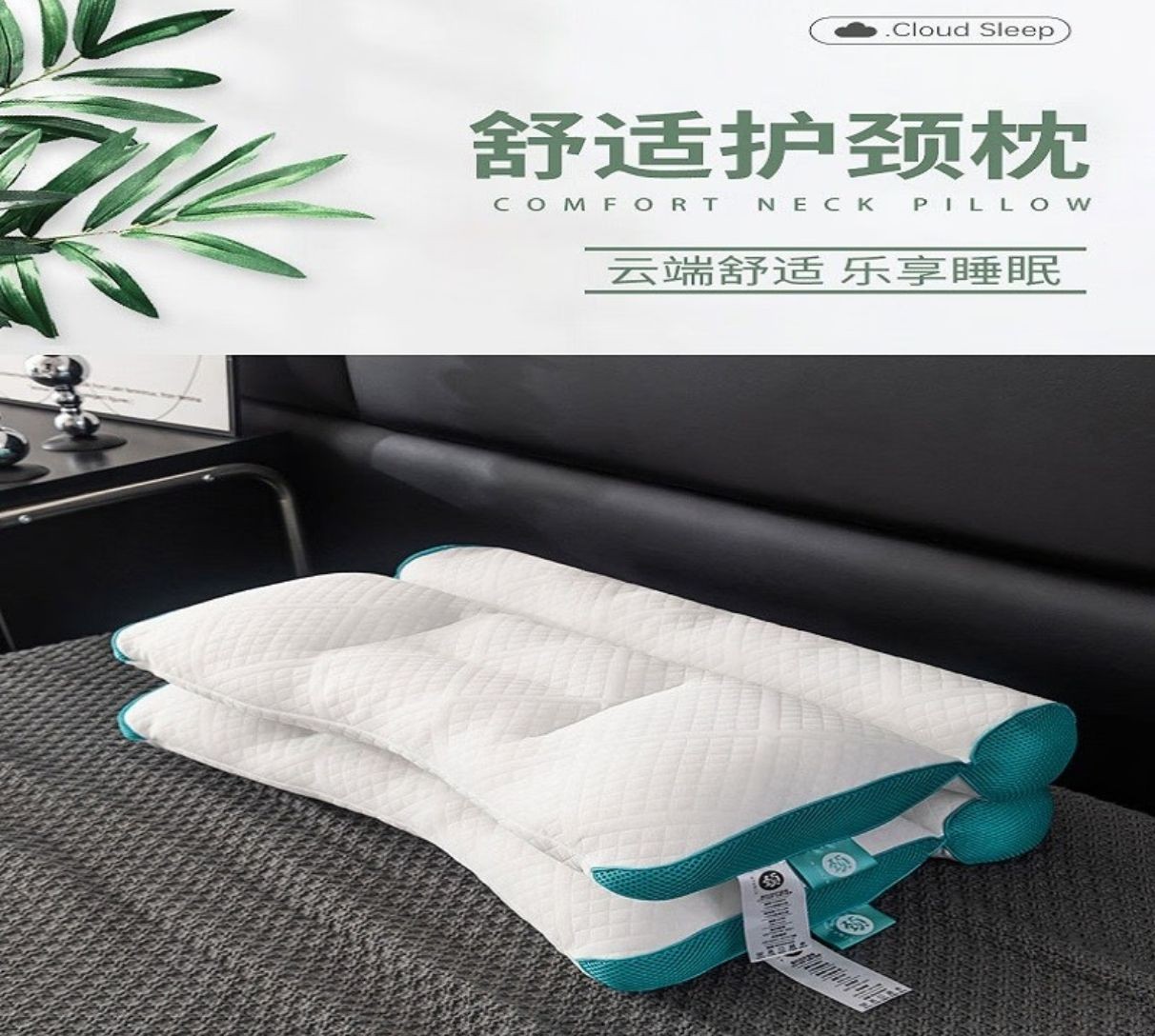 • 商品名称:水帛亲肤舒适二代反牵引修正护颈家用成人单人枕头枕芯单只装48*74cm 白绿色 48*74cm单只装