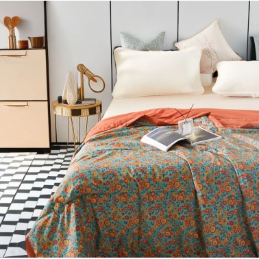 • 商品名称:水帛冰氧棉繁花夏凉被单人双人时尚印花夏凉被春夏必备亲肤柔软 橘青色 150x200cm