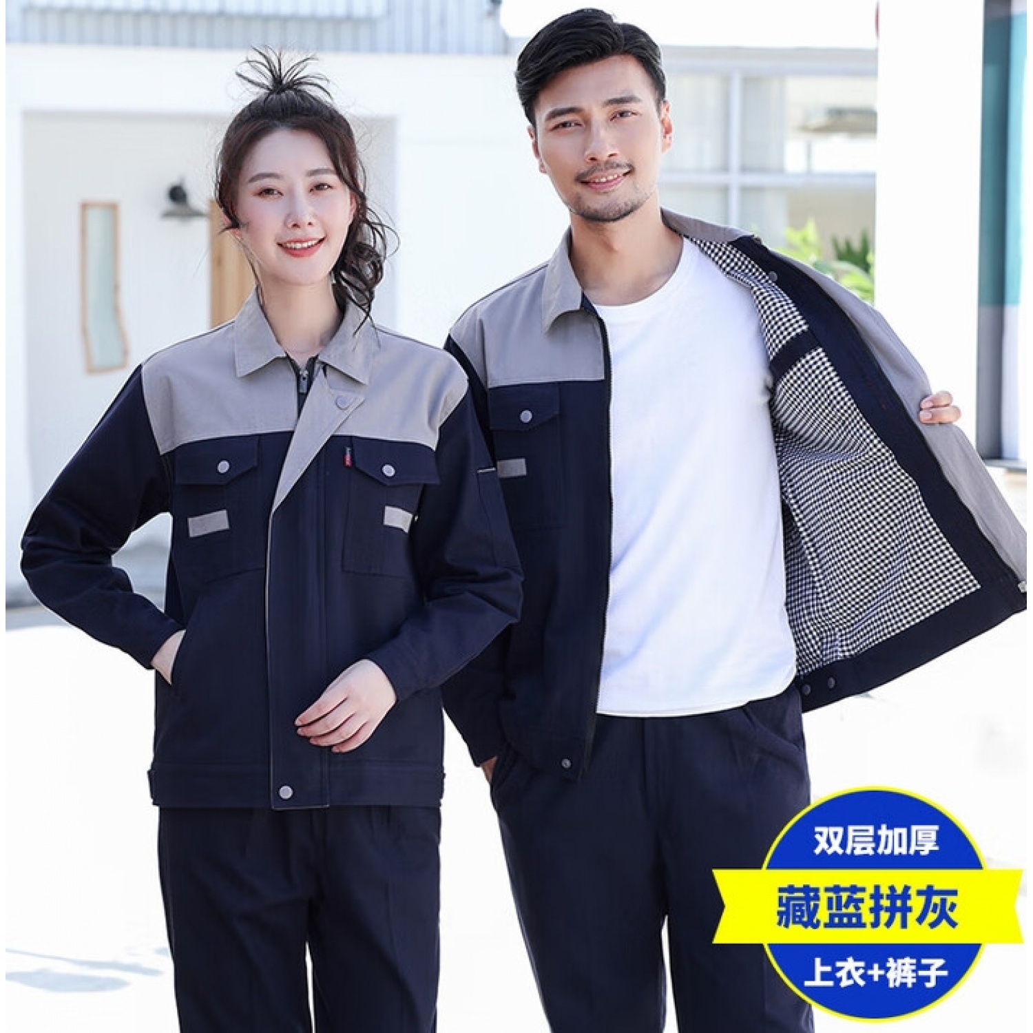 金淼源秋冬季双层长袖工作服男劳保服套装加厚工厂车间定制耐磨上衣工装