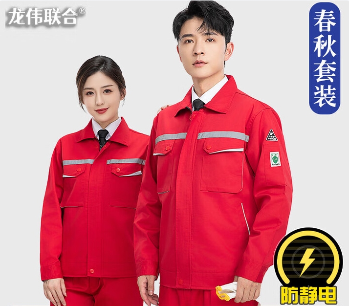 • 商品名称:龙伟联合 春秋防静电工作服套装男女长袖